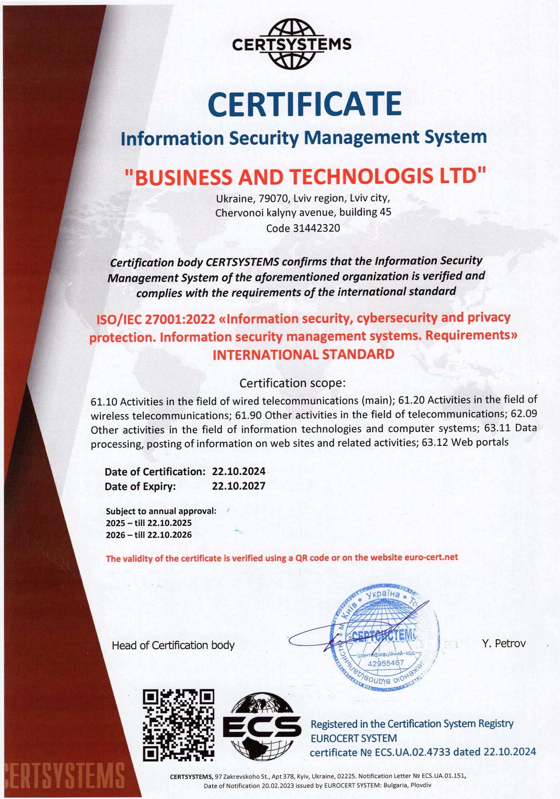 Сертифікат системи менеджменту і інформаційної безпеки (ENG)