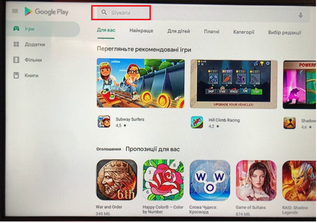 3. Відкриється Google Play, виберіть: «пошук».