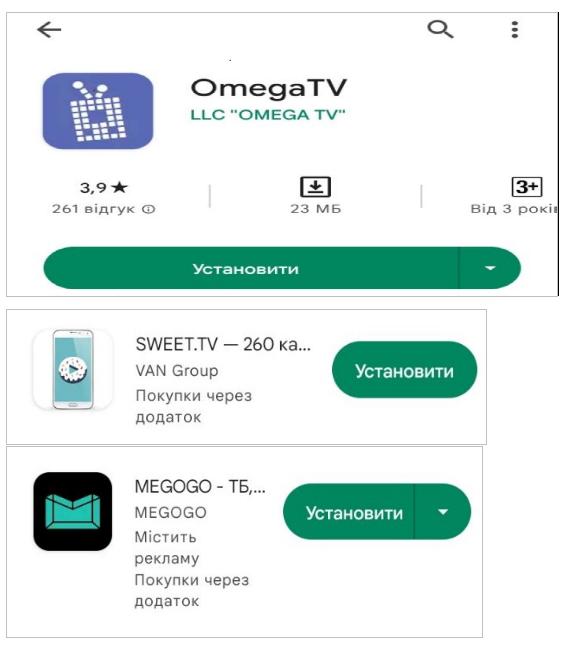5. Встановіть потрібний додаток OMEGA TV/SWEET TV/ MEGOGO TV натиснувши кнопку «Установити».