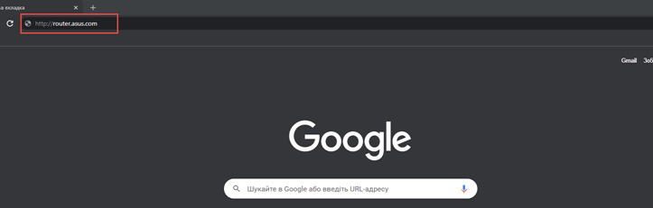 На своєму компютері або смартфоні відкрийте інтернет браузер (Google Chrome, Mozilla Firefox, Opera, Internet Explorer), де в адресному рядку (не в пошуковому) введіть адресу сторінки налаштування роутера. Конкретна адреса знаходиться на наклейці вашого роутера . В даному випадку у нас http://router.asus.com і натискайте Enter.