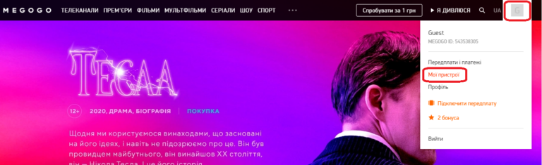 Портал MEGOGO: https://megogo.net/ua/profile