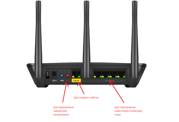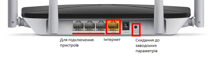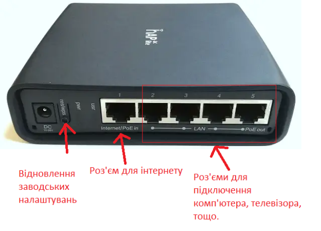 Наприклад, роз’єм №1 для отримання інтернету від провайдера, інші для локального підключення.