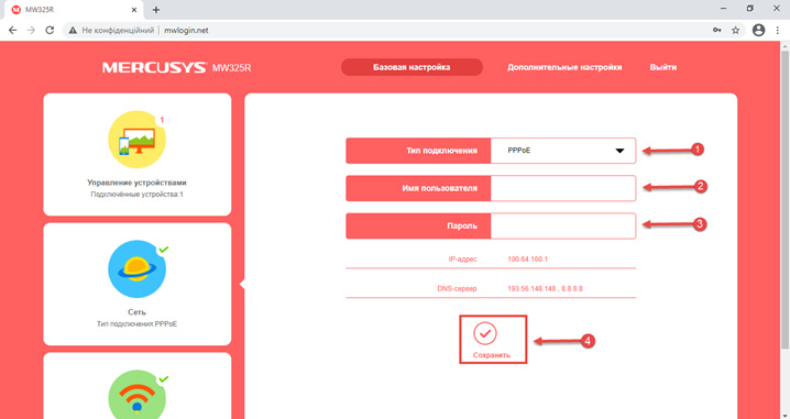 Налаштування роутера Mercusys для PPPoE підключення: