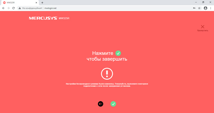 Якщо ви налаштовуєте роутер на пристрої, що підключається до роутеру по беспровідній мережі, з’єднання зникне. Зачекайте протягом хвилини та підключіться до вашої мережі назву якої встановили попередньо.