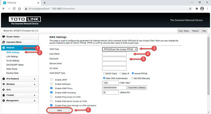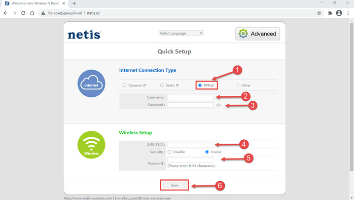 Налаштування роутера Netis для PPPoE підключення: