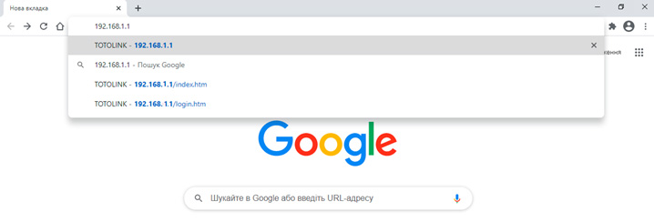 Відкрийте інтернет браузер (Google Chrome; Mozilla Firefox; Opera; Internet Explorer) і в адресному рядку наберіть 192.168.1.1, натисніть Enter