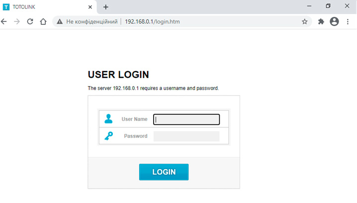 2. Вхід у веб інтерфейс роутера.