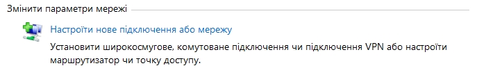 4. По середині вікна в меню оберіть пункт “Настроїти нове підключення або мережу”.