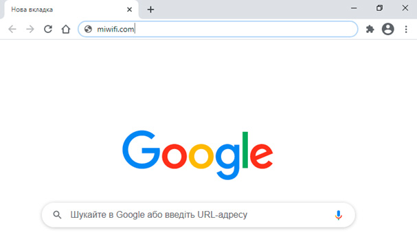На своєму компютері або смартфоні відкрийте інтернет браузер (Google Chrome, Mozilla Firefox, Opera, Internet Explorer), де в адресному рядку (не в пошуковому) введіть адресу сторінки налаштування роутера. Конкретна адреса знаходиться на наклейці вашого роутера. В даному випадку у нас miwifi.com і натискайте Enter.