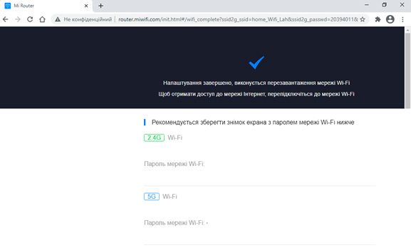 Налаштування роутера завершено. Приємного користування!