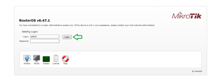 Після успішного перезавантаження роутера, відкрийте інтернет браузер (Google Chrome; Mozilla Firefox; Opera; Internet Explorer; Safari) та в адресній строці (не в пошуковій) вносимо такий IP адрес 192.168.88.1 та нажимаємо кнопочку Login.