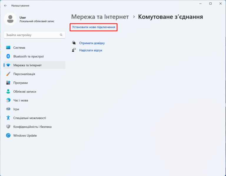 В операційній системі Window 11 потрібно створити нове підключення: