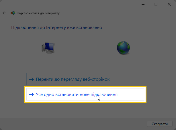 В попереджувальному вікні обираємо “Усе одно встановити нове підключення”: