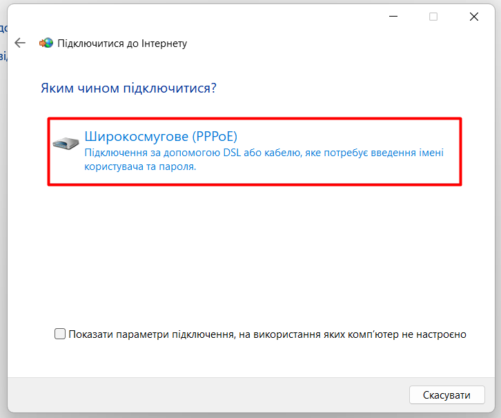 Налаштування підключення до інтернету за допомогою протоколу PPPoE