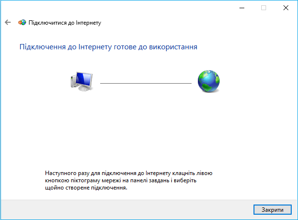 Налаштування інтернету на комп’ютері завершено. Приємного користування!